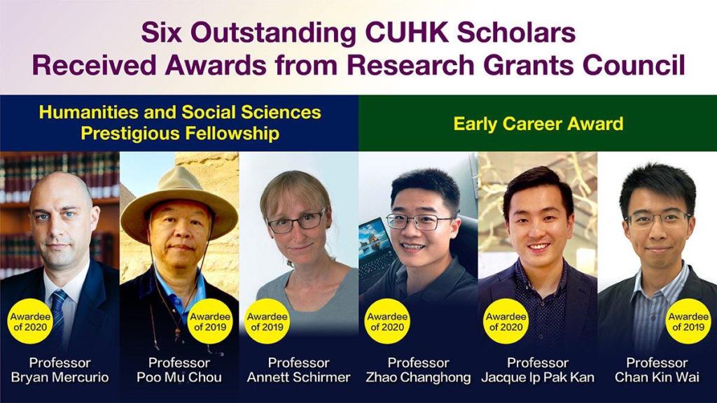 中文版本 : 中大六位優秀學者分別獲研究資助局頒發2019及2020「傑出青年學者獎」及「人文學及社會科學傑出學者獎」